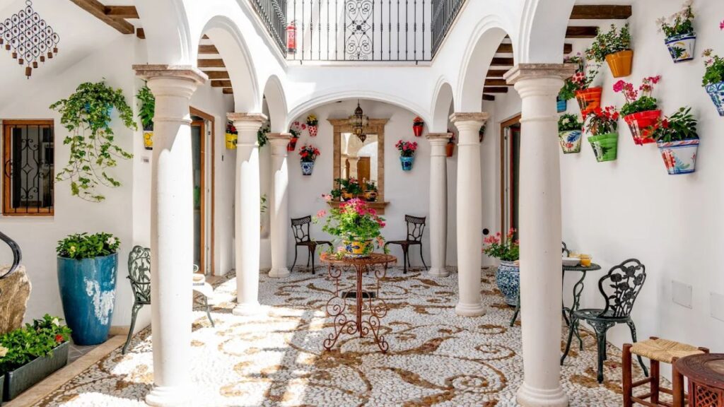 Itโs set inside a beautifully restored traditional townhouse, built around a classic Andalusian courtyard with tiles, plants, and a really calm atmosphere. It feels more like staying in a stylish private home than a hotel.