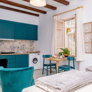 Casa de las Remigias is a bit different from the other options on this list. Itโs not a traditional hotel, itโs a small collection of fully equipped apartments set inside a historic 19th-century building right in the Old Town.