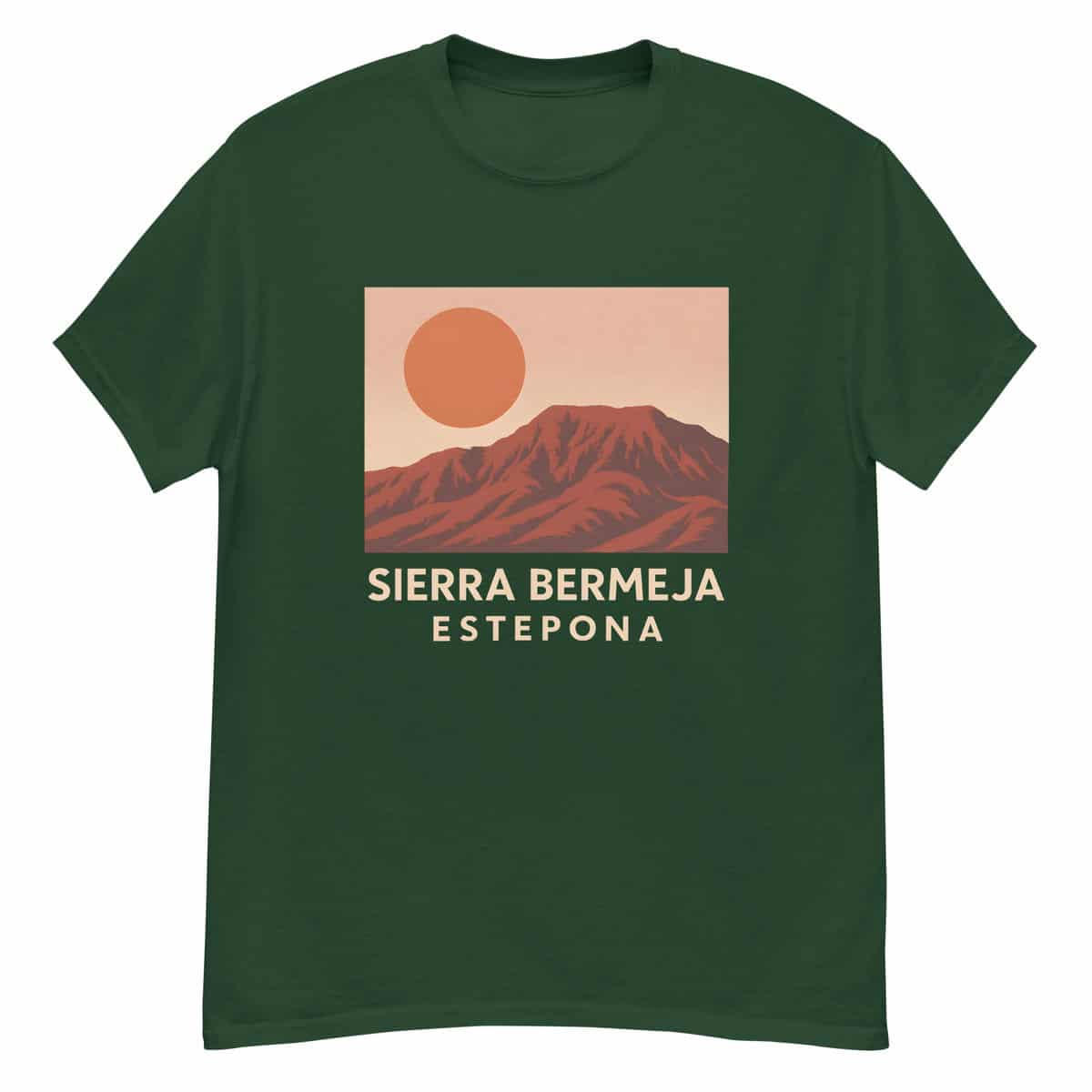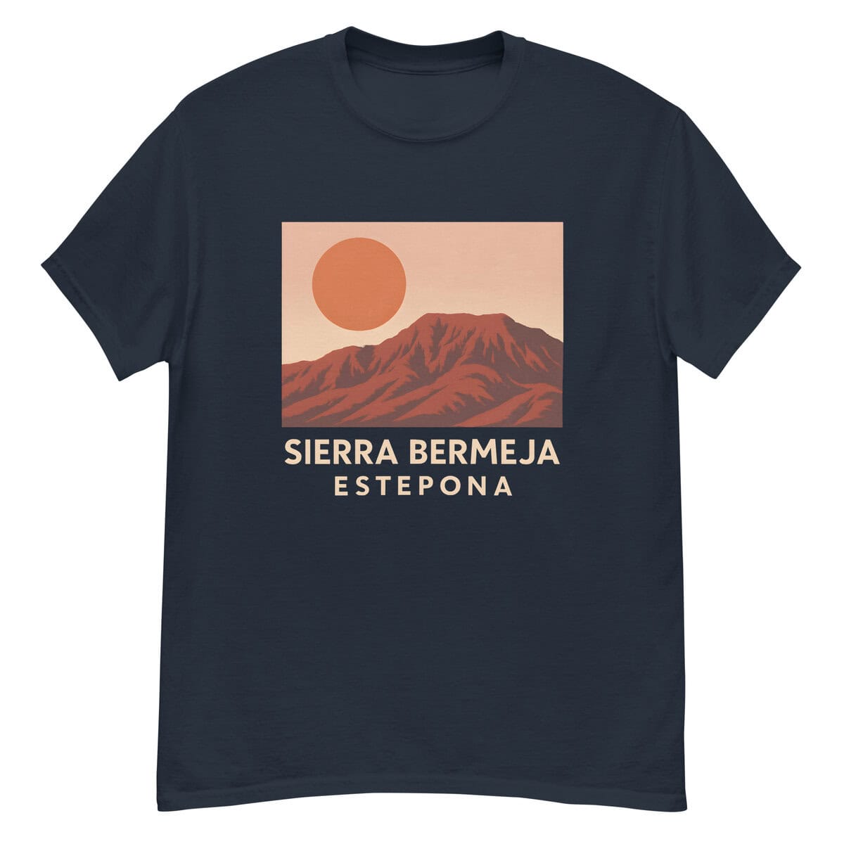 Make a statement with this striking Sierra Bermeja design, featuring Estepona’s iconic red mountains beneath a bold sun. Clean lines and earthy tones give it a modern, minimalist vibe — perfect for mountain lovers and sunset seekers.